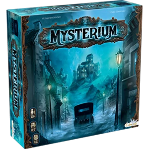 A horrible crime was committed on the grounds of Warwick Manor, thirty years ago. Now, the mansion is haunted by the ghost of the murdered servant, and it’s up to a group of psychic investigators to get to the bottom of the mystery. Mysterium is a cooperative game of deduction and teamwork for two to seven players. Over the course of the game, one player takes on the role of the ghost and over the course of a few scant hours, tries to lead the psychics to the correct culprit. Every member of the team will receive numerous visions, but what is the ghost trying to tell you exactly? Can the psychics determine the weapon, location and killer, or will a violent criminal pull off the perfect murder?