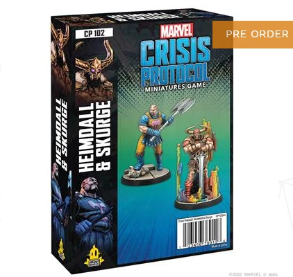 Two mighty Asgardians join the ranks of the gods in Marvel: Crisis Protocol! Heimdall is the all-seeing Asgardian in charge of defending the Bifrost, the Rainbow Bridge. Chosen by Odin himself, he is Asgard’s first line of defense against any incursion. Joining him is Skurge, a legendary Asgardian warrior known as the Executioner. Once his mind is set to a task, Skurge’s will is as steel as the head of his axe. This pack brings these characters to life with highly-detailed, beautifully-sculpted miniatures perfect for fighting alongside their fellow Asgardians. In addition to their innate abilities, two Team Tactic cards give them even more options for unleashing their power in battle.