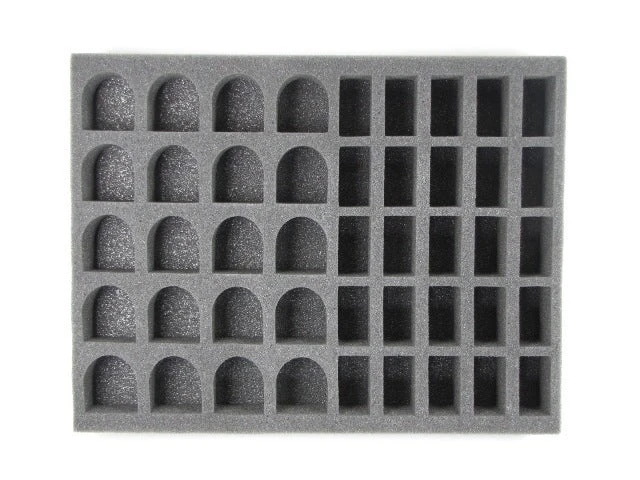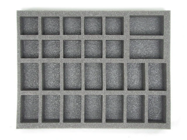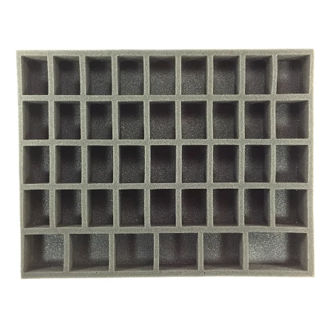 - 1x Battle Foam Large 32mm Space Marine Troop Foam Tray – 1.5Â inch thick tray with 32x 2 x 1 1/4 inch (50 x 32 mm) cut outs, 4x 1 3/4 x 2 inch (44 x 50 mm) cut outs, 5x 2 x 2 inch (50 x 50 mm) cut outs and 1x 3 x 2 inch (76 x 50 mm) cut out.