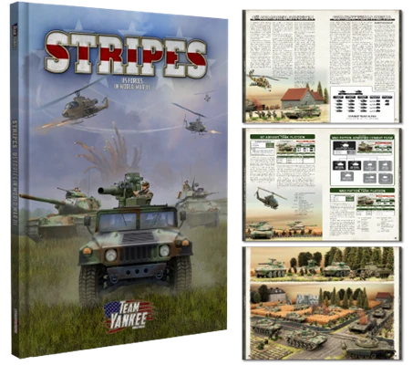 Stripes is the second book to expand on the forces that came with original Team Yankee rulebook. The book covers the US forces in Germany in August 1985, more specifically the 1st Armored Division, 82nd Airborne Division, and the 2nd Marine Division.