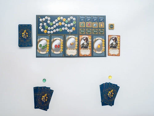 Jeweler’s loupe in hand, you must decide how best to spend your hard-earned ducats: acquiring beautiful gems (diamonds, emeralds, and rubies); or buying the favors of the various court followers. After three years of craftsmanship, the jeweler who sells the most precious gems and builds the largest fortune will receive the coveted title of King’s Jeweler and a place at the court!
