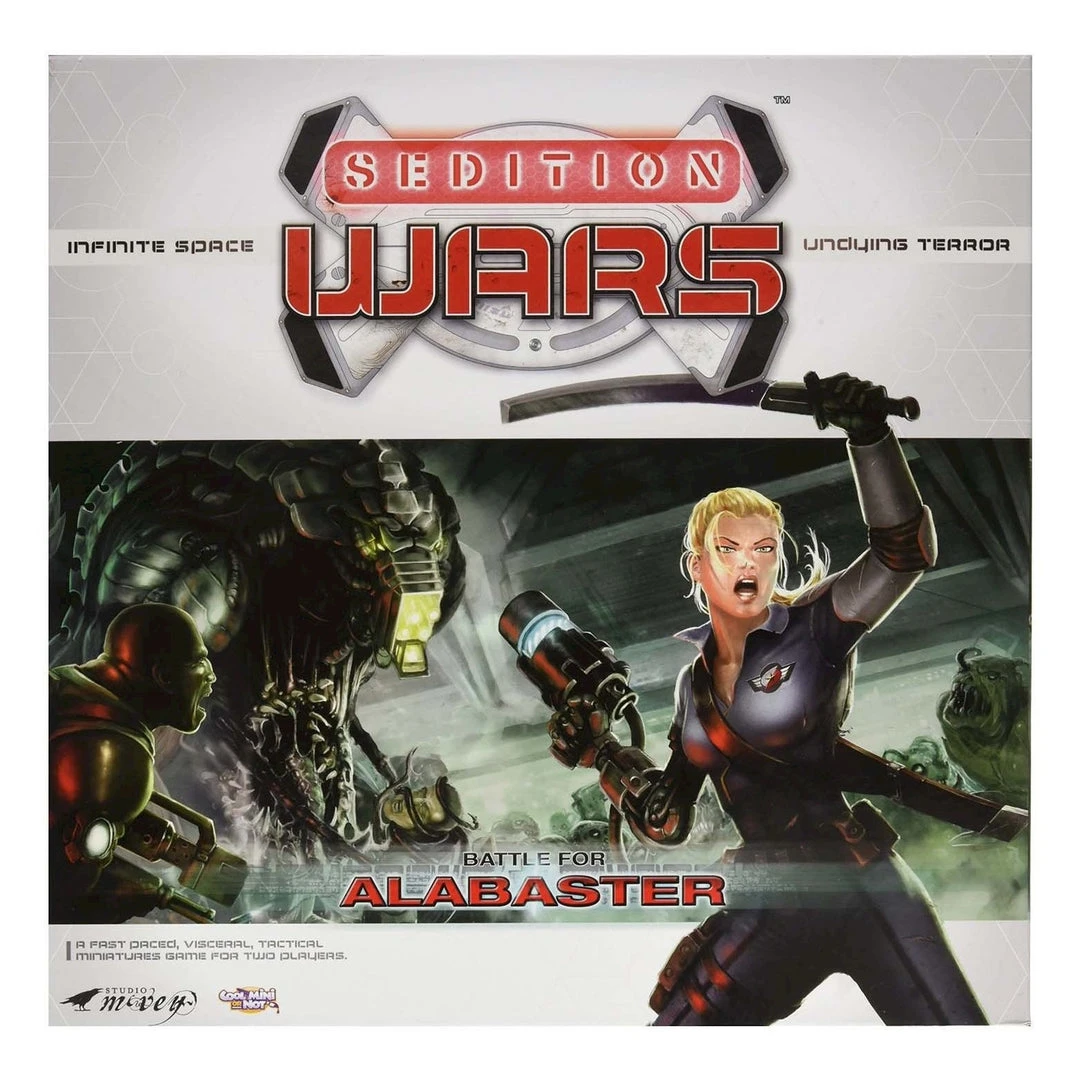 Sedition Wars: Battle for Alabaster is a fast paced tactical miniatures game for two players. Survival horror at its finest, game play is fast and bloody, creating urgency and claustrophobic terror, as the Vanguard fight for their very lives against an unrelenting nightmare. Battle for Alabaster is the first part in the Sedition Wars game experience. Future expansions will introduce exciting new factions, evocative settings and expand on the compelling storyline that guides the action. Once players have fought for control of Alabaster, they will want to continue the adventure in future episodes. From the mind of industry legend Mike McVey, and created by the finest artists, miniatures sculptors and game designers, the contents and play materials of the game are of highest quality. Sedition Wars: Battle for Alabaster represents the best that miniatures gaming has to offer. Miniatures are supplied unpainted and assembly may be required.