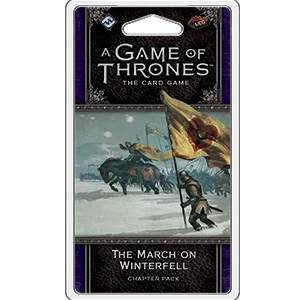 The March on Winterfell is the second Chapter Pack in the Dance of Shadows cycle for A Game of Thrones: The Card Game. Featuring three copies each of twenty new cards, this pack draws you into the world of George R. R. Martin’s A Song of Ice and Fire series where the key players in the game of thrones find themselves surrounded by enemies. In the North, Jon Snow faces impossible choices that tear him between his duty to the Night’s Watch and the bonds that still tie him to the family he left behind. In King’s Landing, Cersei Lannister attempts to maintain a hold on the seven kingdoms as the Tyrells and the Faith of the seven split the peoples’ loyalties. And in Meereen, Daenerys Targaryen must learn which sacrifices she must make to win the hearts of her people as assassins and a deadly plague tear the city apart.