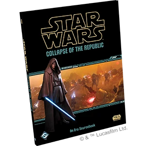Discover the last days of the Old Republic with Collapse of the Republic, a new sourcebook for Star Wars™ Roleplaying! This sourcebook explores the latter days of the Clone Wars and is fully compatible with the complete Star Wars Roleplaying game lines including Edge of the Empire, Age of Rebellion and Force and Destiny.