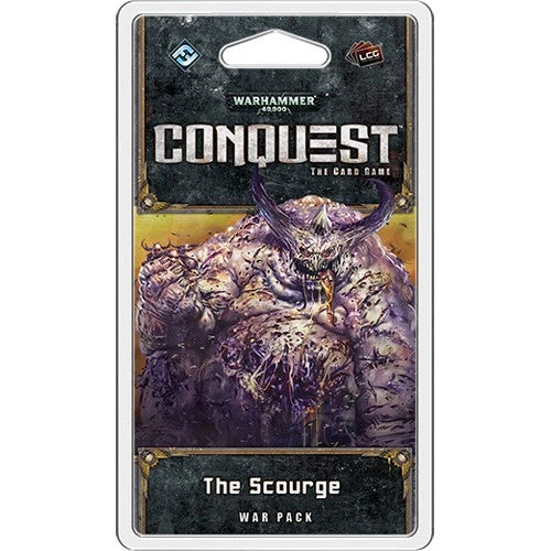 In this War Pack, your battles for the Traxis sector intensify as the seven factions included in the Conquest Core Set gain deadly new units, wargear, and tactics. The Scourge continues to expand the main themes of the Warlord cycle with a new Chaos warlord and a host of new cards for every faction that interact directly with warlords. You’ll find sixty new cards in this expansion, including a new warlord with his signature squad and three copies each of seventeen distinct cards. Within The Scourge War Pack, new Space Wolves units join the hunt for your opponent’s warlord, the Dark Eldar plumb new depths of torture and depravity, and a vicious herd of Attack Squigs will prove to be a dangerous foe.