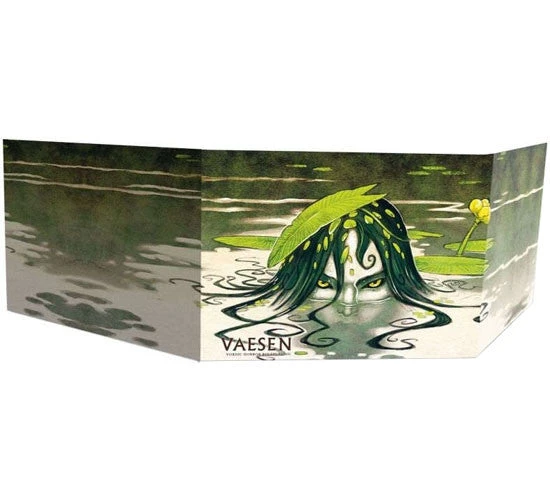 A deluxe Gamemaster’s screen in landscape format for Vaesen. It features Johan Egerkrans’s art on the outside and a host of useful tables and important information on the inside, while keeping the GM’s plans hidden from the eyes of inquisitive players. Included in the package is also is a large double-sided poster featuring a beautiful map of the Mythic North setting on one side and the town of Upsala on the other. Measures 432x558mm.