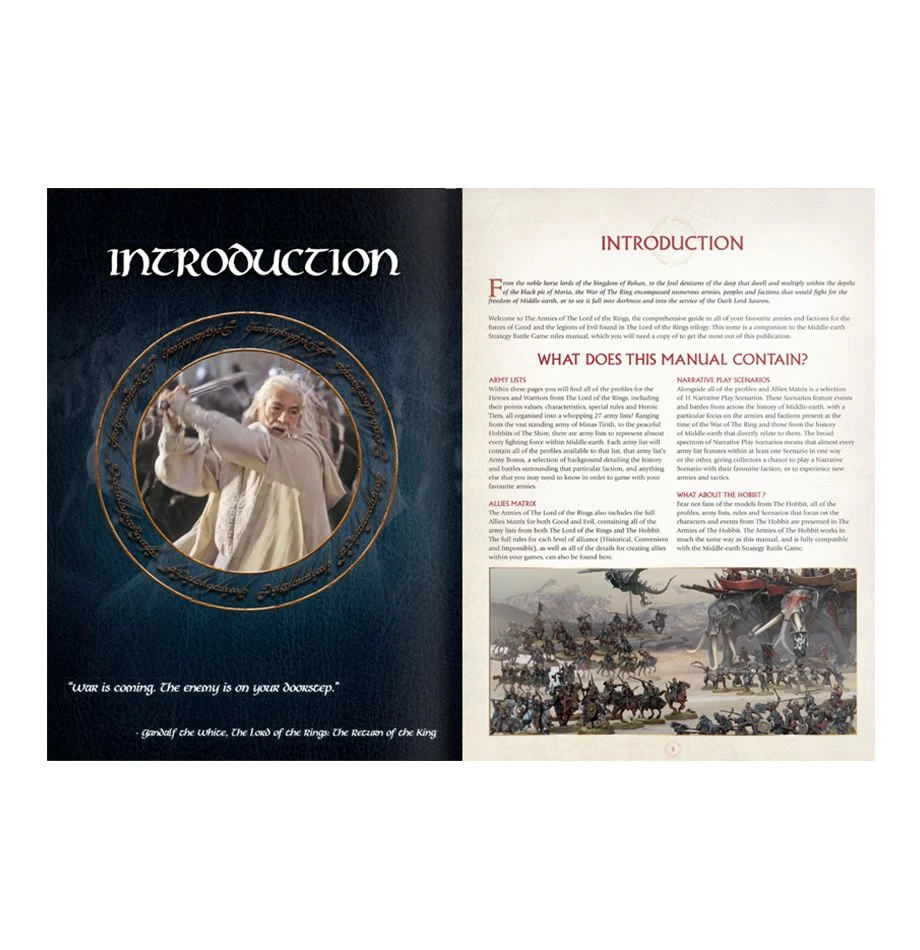 The Armies of The Lord of The Rings™ is an expansion for the Middle-earth Strategy Battle Game that enables you to recreate your favourite scenes from The Lord of the Rings™ Motion Picture Trilogy with your collection of Citadel and Forge World models. It includes all the information you need to take control of all the Heroes and armies on the tabletop – included in the 244-page hardback: