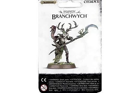 This multi-part plastic kit contains all the components necessary to assemble a Branchwych, armed with a Greenwood Scythe and accompanied by a Bittergrub. Comes supplied with one Citadel 32mm Round base.