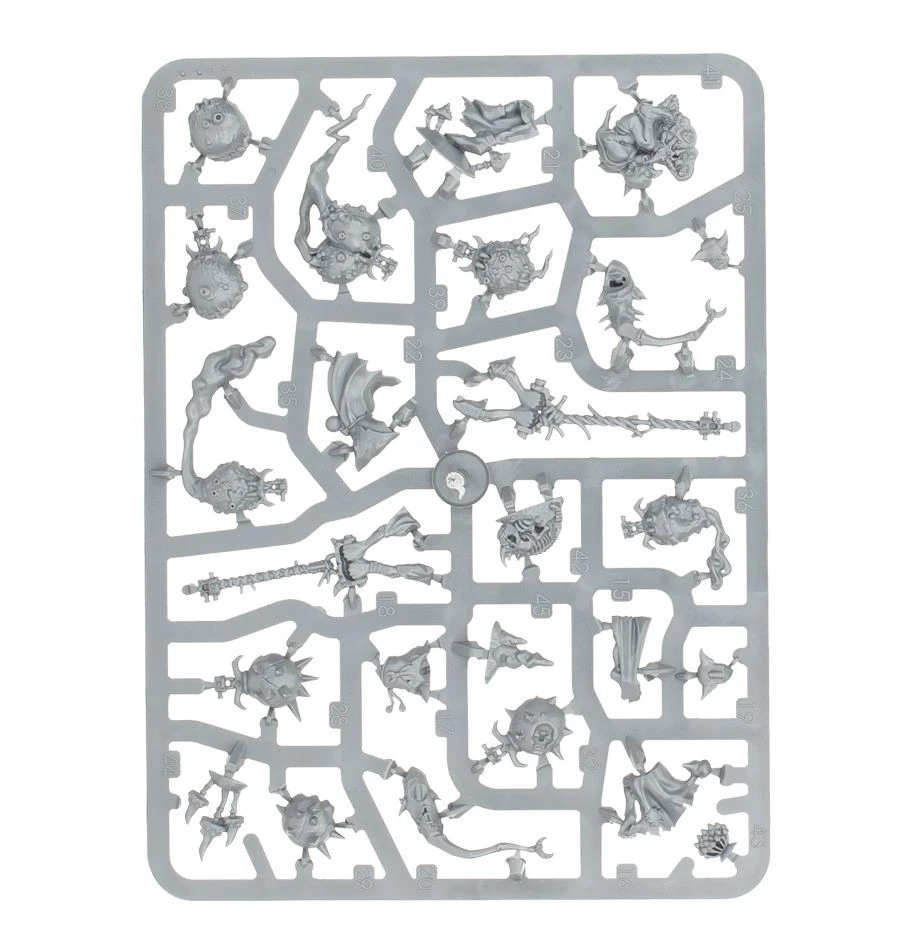 This kit builds 5 Loonsmasha Fanatics or 5 Sporesplatta Fanatics. This kit is packed with detail as well as a host of spares, including a skeletal squig, mushrooms and a bonus miniature of a grot being sick – perfect for adding some gribbly detail to your chosen bases.