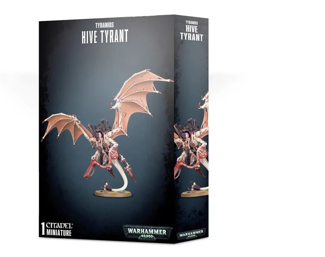 The Hive Tyrant is an incredibly dynamic model, posed with monstrous, fibrous and ragged wings extended out wide and with only its serpent-like tail touching the ground, as if launching off into flight (or to pounce on its prey). Like other Tyranids, it has a distinctive chitinous shell with chimneys on its back, and a hideous skeletal underbody. The Hive Tyrant makes a striking addition to any Tyranid collection.