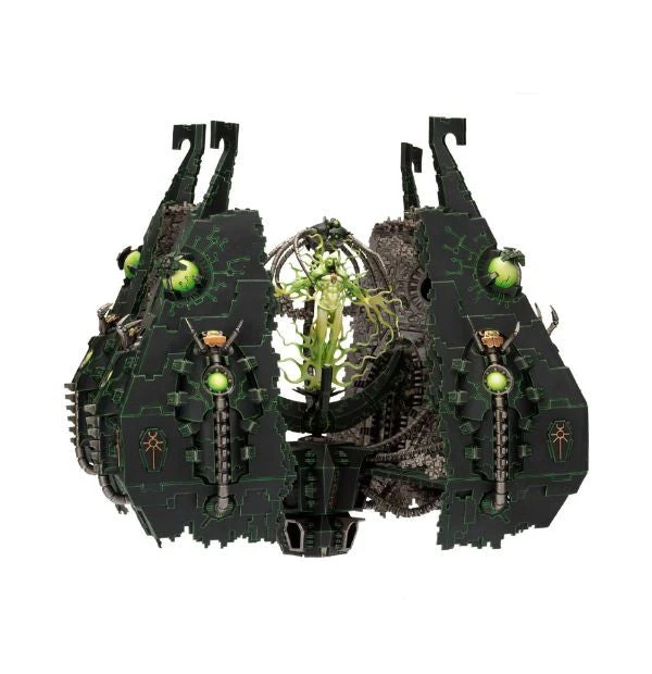 The Necron Tesseract Vault holds an imprisoned Transcendent C’tan, turning his powers into phenomenal weapons of mass destruction that can age its foes to dust, set acres ablaze, or trigger seismic shifts in the planetary crusts with a single gesture.