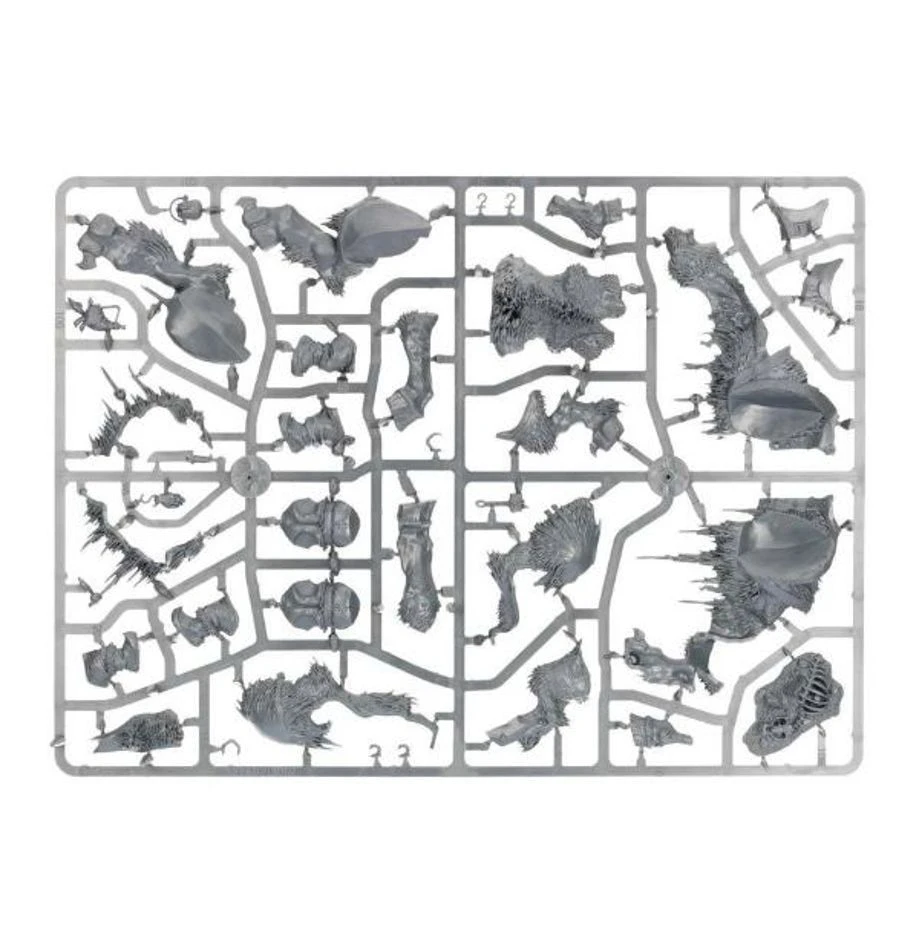 This multi-part plastic kit contains all the components necessary to assemble one Frostlord on Stonehorn, with a Citadel 120x92mm Oval base. The kit can optionally be used to assemble a Huskard or Beastriders on Stonehorn, or a Huskard, Frostlord or Beastriders on Thundertusk.