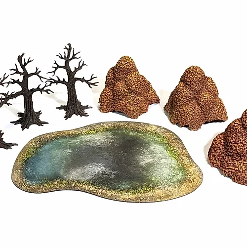 Use the trees and stump on the template to represent an area of Woods or a Forest in your game. Or scatter the trees on your table to break line-of-sight and provide cover.