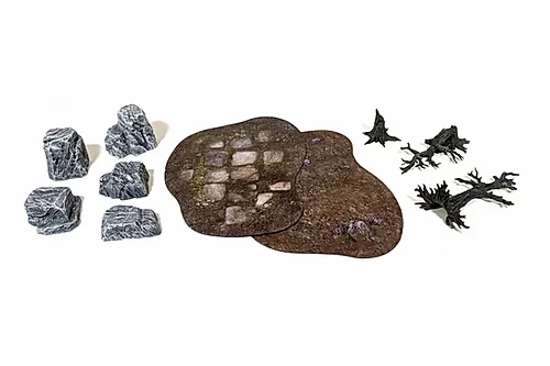 Broken Ground contains a collection of five different-sized Rocks, two Fallen Tree Trunks, a Stump, and two area Templates.