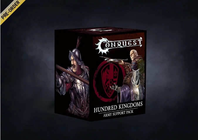 This set includes Hundred Kingdoms’ Secret Objectives as well as all new, individually illustrated, Spell Cards for each spell available to the casters to serve as memory aids and casting tokens. All of these cards are contained within a beautifully illustrated and faction themed deck box to allow players to keep all of the cards needed to play Conquest in a single, easy-to-access container.