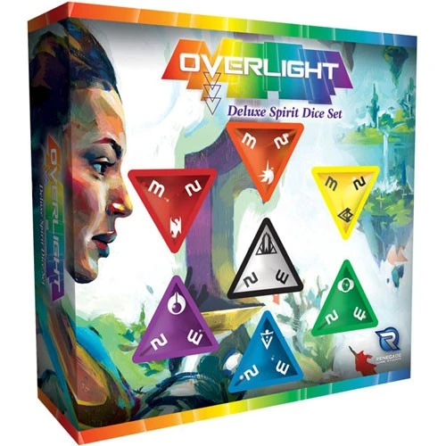 Herein you will find seven deluxe, over-sized Spirit Dice for Overlight RPG. Like seven crystals mined from the mountains of Zenith, they are crafted in the colors of the Overlight and feature the sigils of the seven Virtues – Spirit, Wisdom, Logic, Compassion, Will, Vigor, and Might.