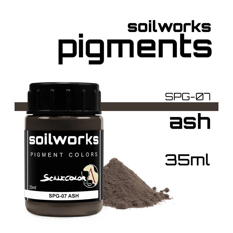 Natural pigments for terrains, dioramas and figures. They can be mixed with different plasters, acrylics, varnish or fixer. Different effects wet and dry to depict sand, mud and dust.