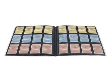 Black Deck Builder’s Playset PRO-Binder designed for collecting playsets of your favorite trading card. Each row holds a 4-card playset. Embossed middle black web material, gives cards a classic framed look. Side loading pocket design to prevent cards from easily falling out. Elastic strap holds the binder shut when not in use. All materials made from archival-safe, acid-free non-PVC material. Sized to fit 480 standard sized cards in Ultra Pro Deck Protector sleeves.