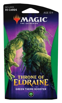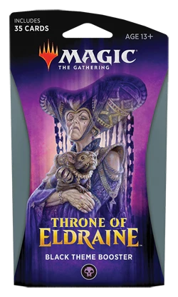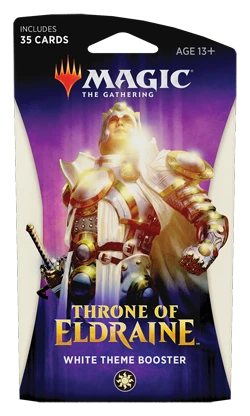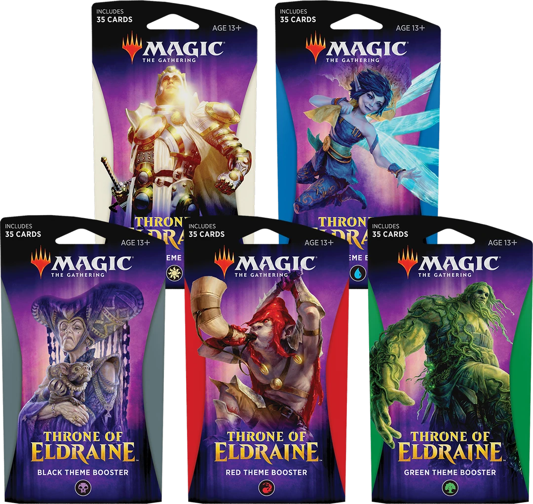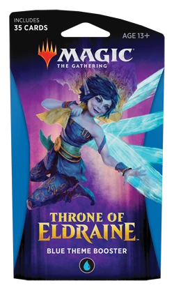 - 35 randomized cards from Throne of Eldraine, of a specific color, per theme booster pack.