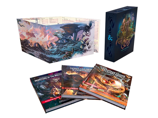 - Includes fifth edition’s best-selling rules expansions Xanathar’s Guide to Everything, Tasha’s Cauldron of Everything, and Monsters of the Multiverse, along with a Dungeon Master’s screen together for the first time in a beautiful slip case.